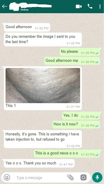 “My friend’s mum recommended this product for my wife ..all the treatments we have tried, we have been managing my condition and bearing so much pain too, but right now we feel great, the frequent itching stopped completely”.